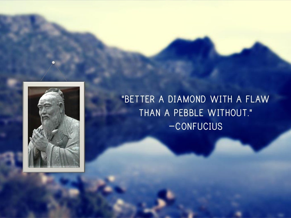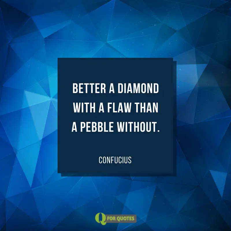 A Diamond with a Flaw. Email Quote to Friends. Better a diamond with a flaw than a pebble without. Better a diamond with a flaw than a pebble without - Confucius. Build Back Betters Path. Better a diamond with a flaw than a pebble without - Confucius The world offers itself to me in a thousand ways and I ache with an awareness of how infrequently I am able to receive more than a small fraction of what is offered of how often I reject. It does not matter how slowly you go as long as you do not stop.